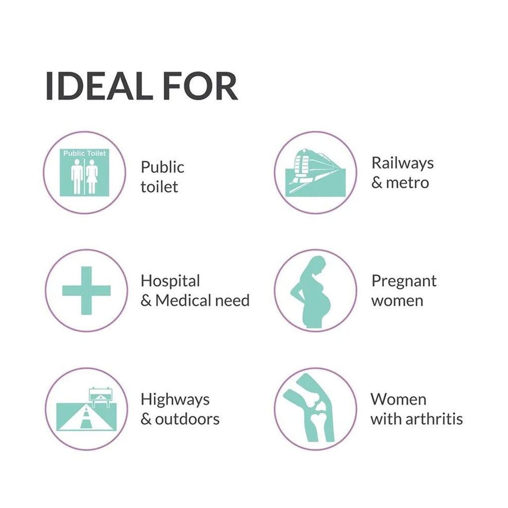 Female reusable urination device allows women's of all ages to stand and urinate with its unique designed funnel - when you don't want to sit on an unfriendly toilets. A must-have device for hospital and medical needs, highways and outdoor, railway and metro as well as public toilets. First portable, reusable female urination device for women using which women can stand and urinate in all public and common toilets. It is a revolutionary product for women who hate dirty toilets when travelling fights or train or highways for work or leisure treks, marathons, road trips, events or those with medical condition joint pains or pregnancy. Using Pee device you can simple stand and pee and avoid all UTIs or infections or yucky experiences at dirty toilets. It comes with simple open place pee throw instructions and is very convenient to use with no spills. Now use reusable pee device and stay away from infections, UTI. No more wiping of seat, no more squats, no more holding it in.