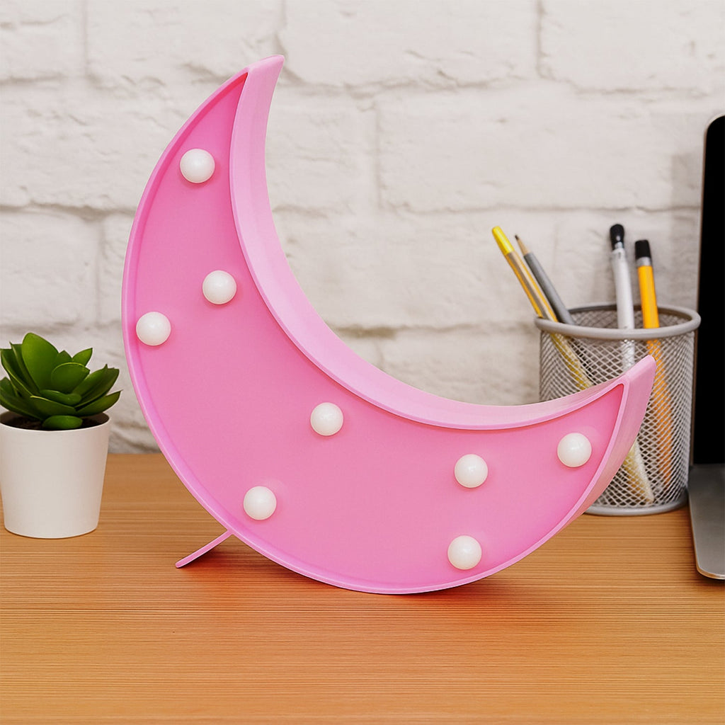 Moon Shaped LED Decorative Night Light – Battery Operated Marquee Lamp for Kids Room, Bedroom, Party & Home Decoration