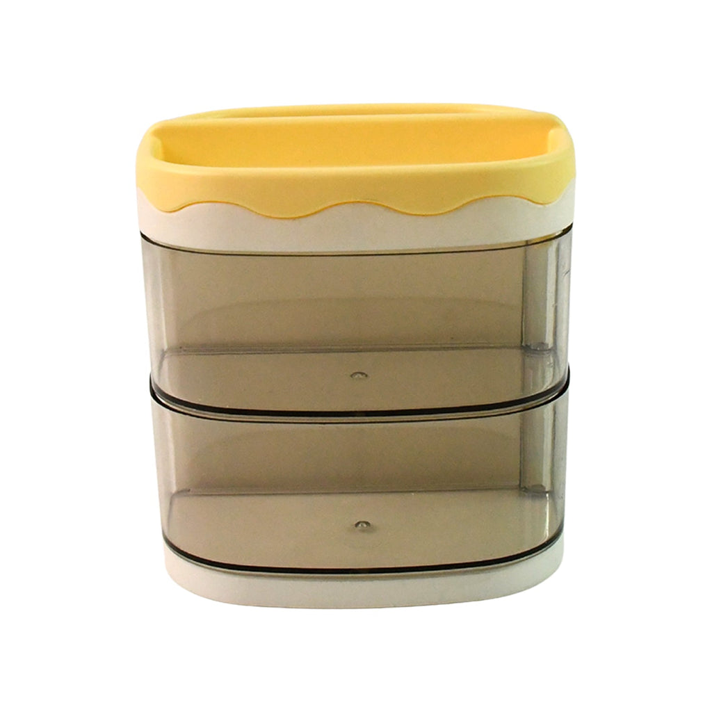 multi-purpose organizer , stationery holder , pen stand with drawer , storage box , desk drawer unit , drawer organizer , office desk organizer , study table accessory , 2 layer drawer box , desktop organizer with tray , dual drawer stationery box