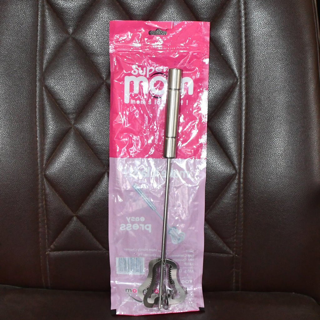 Supermom Handy Stainless Steel Charner  – Manual Beater, Lassi, Buttermilk, and Egg Beating Whisk with Easy Press Handle