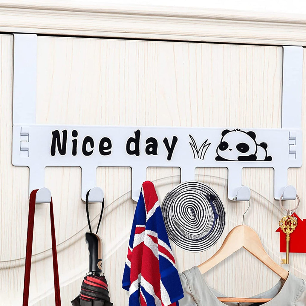 Heavy-Duty Carbon Steel Cartoon Nice Day Over Door Hook Hanger Rack, Towel Hanger, Removable Door Hook, Coat, Scarf, Cloths Hanger (2 pc / 6 Hook / White Color)