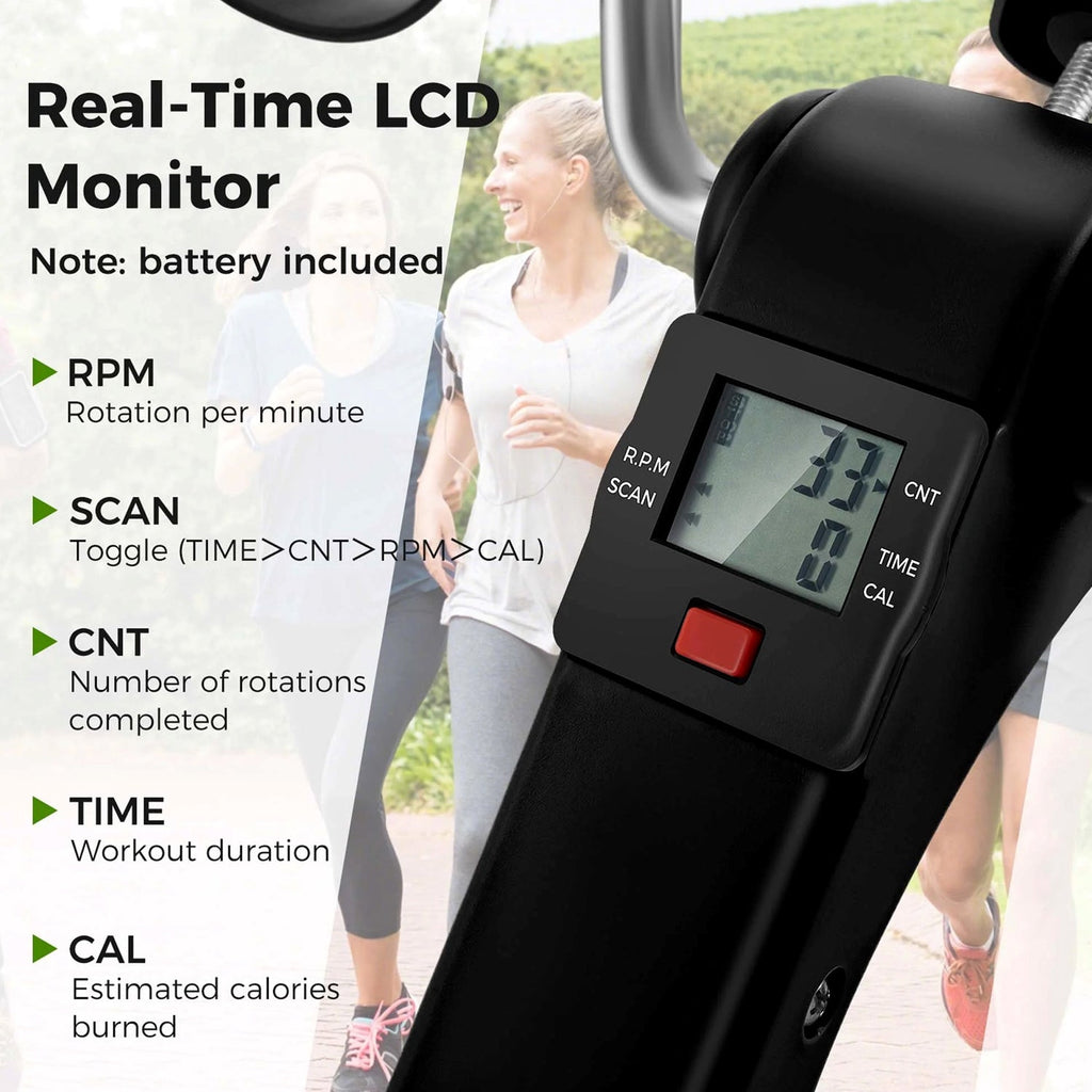 This exercise pedal is equipped with an LCD, which keeps the user updated with detailed statistical information about time spent, distance covered, total count and calories burned. The continuous updates help you stay motivated.