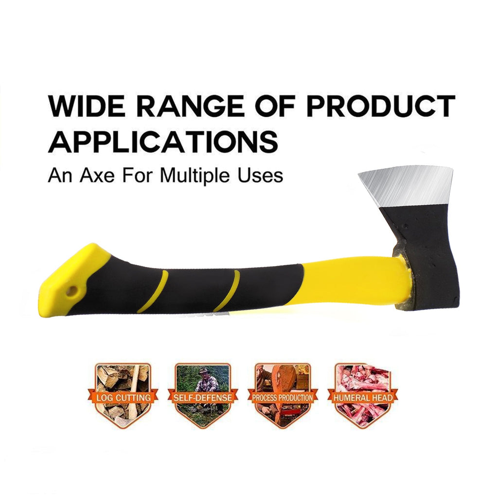 This Hatchet is made from very strong and reliable fiberglass material and has a rubberized section where you can have firm grip to split away wood logs or chop wood. The steel head is designed for maximum force and with a strong body and handle this will last you for many tasks.
