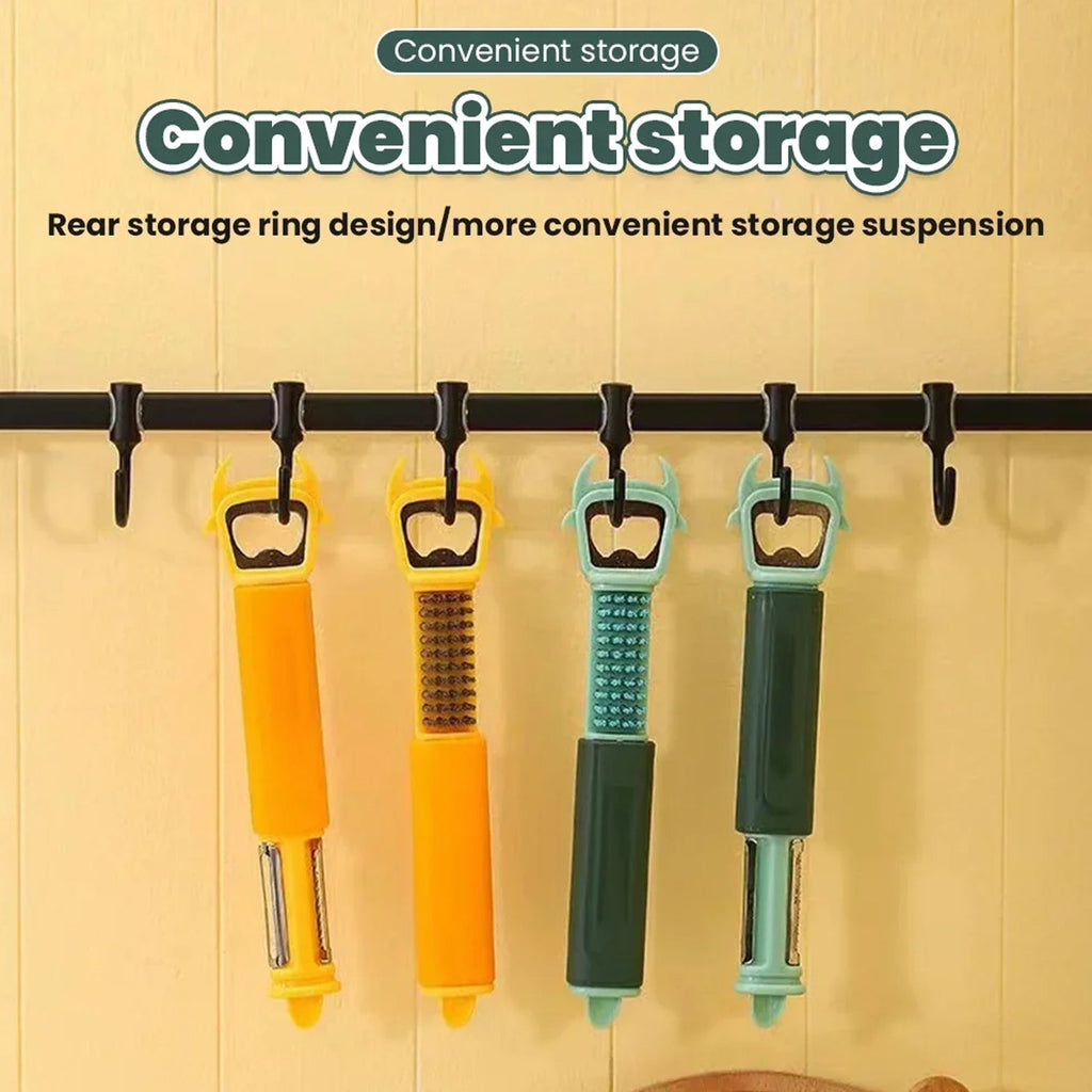 • VERSATILE FUNCTIONALITY - With this vegetable peeler, you can peel and clean different types of fruits and vegetables, as well as grate, open bottles and do more with its 7-in-1 design that simplifies and improves your work in the kitchen.